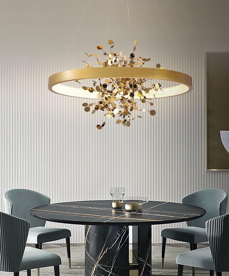 نوع محصول: لوستر تولید: وارداتی کد: فان رنگ بدنه: طلایی ابعاد: قطر 60 سانت جنس: آلومینیوم سرپیچ: SMD سبک: مدرن
